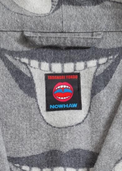 横尾忠則が描いた目と口をジャカード織で表現したテキスタイル。